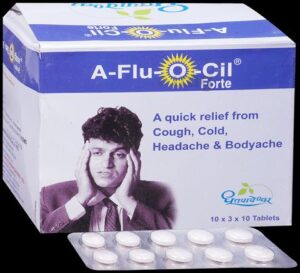 Dhootapapeshwar A Flu-O-Cil Forte Tablet is a health supplement that can help alleviate common cold, cough, headaches, and body pain. It may also aid in regulating body temperature.